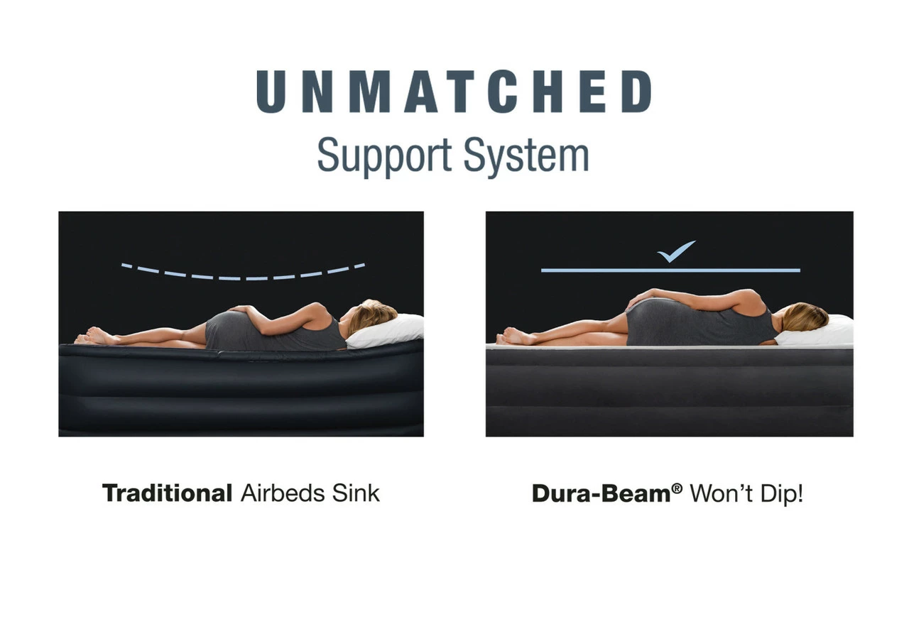 Experience a cozy and comfortable night’s sleep with the Plush Headboard Bed. The functional built-in headboard provides back support when lounging or watching TV. It also prevents pillows from falling on the floor while sleeping. Dual-layer comfort top surface provides a cushioned feel for maximum comfort. Powerful internal pump makes inflation and deflation easy and hassle-free.