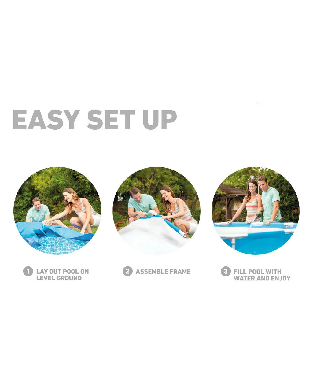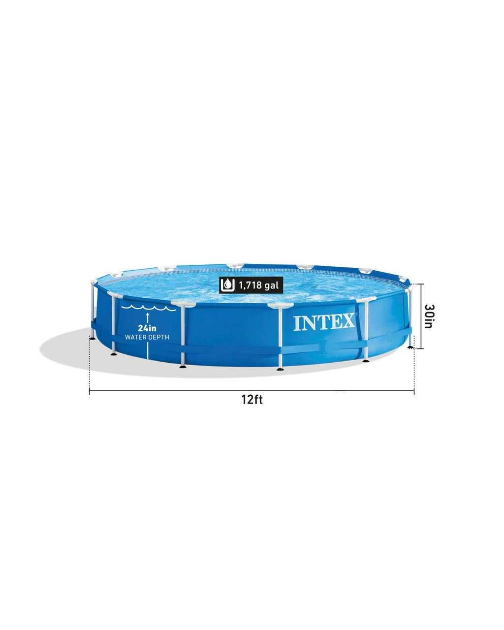Beat the heat all summer with the Intex 12ft X 30in Metal Frame Pool. Engineered for strength, this pool is supported by strong, durable steel frames which are powder coated for rust resistance and beauty. Triple strong, SUPER-TOUGH laminated sidewalls are reinforced with an all-around band to keep frame legs firmly in place. This pool will make your backyard the place to be all summer as your family can relax and play. Ready for water in 30 minutes, – follow the instructions for easy set up, and enjoy the fun!