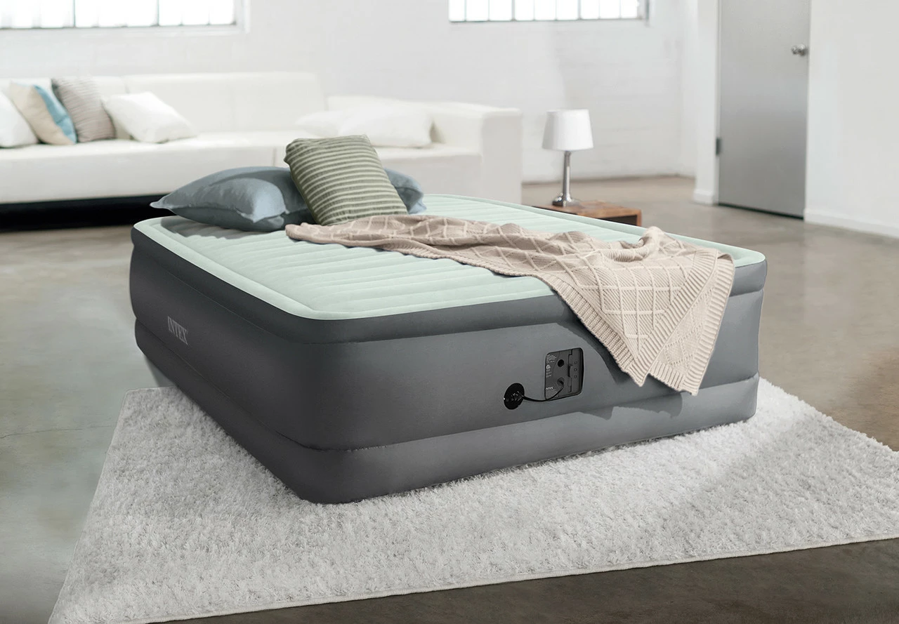 Experience a new dimension of luxury with the Intex® PremAire® I elevated air mattress. Built with our patented Fiber-Tech® construction, our PremAire® I beds offer superb structural stability and support. The high-strength fibers provide an interior with amazing durability and unmatched comfort. The bottom and sides of the mattress are made of laminated PVC to provide high-quality puncture resistance. The mattress pillow top is made up of air pockets that allow air to flow smoothly and gradually across the surface for an unparalleled sleeping experience.