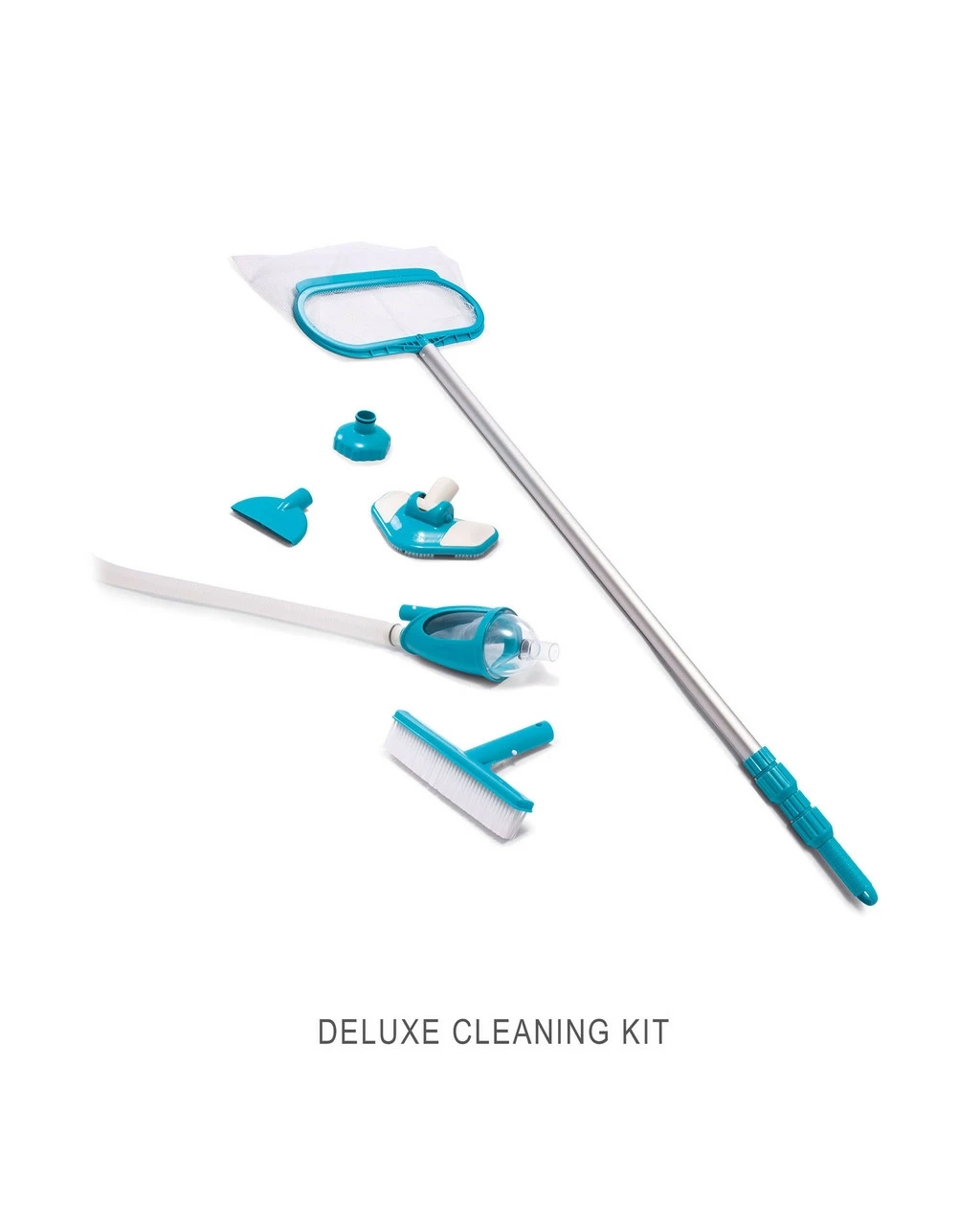- Includes all of the components you need: Pool, Ladder, Cover, Krystal Clear Filtration and Sanitation system, Deluxe Pool Maintenance Kit and Volleyball Set