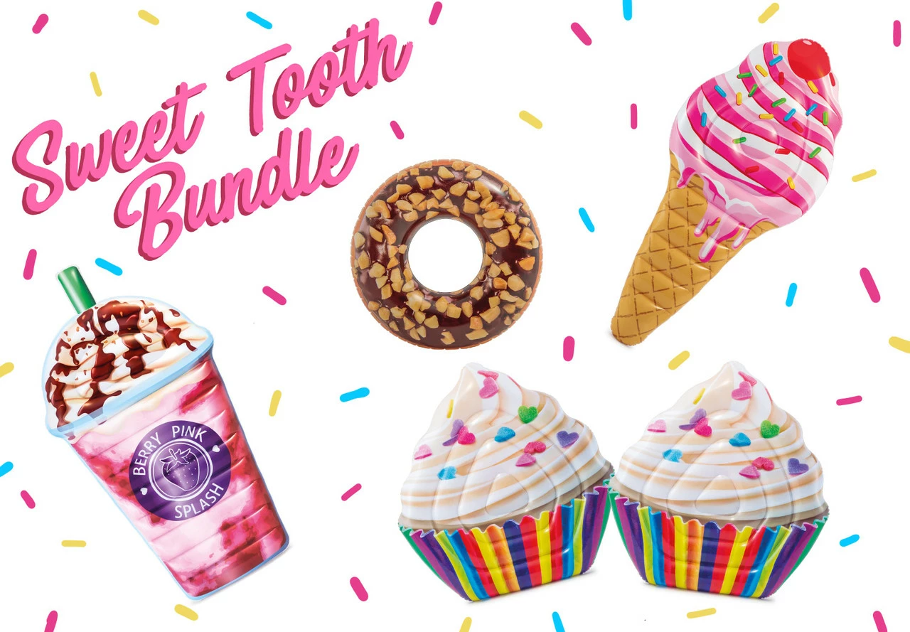 This bundle of floats will sweeten up any summer pool day. Bring the deliciousness of your favorite treats including an ice-cream, donut, 2 vanilla cupcakes and a cold berry drink into the water and enjoy cooling down.